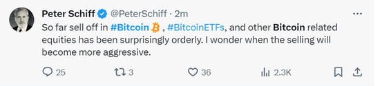 到目前为止,比特币、比特币ETF和其他与比特币相关的股票的抛售出人意料地有序。我想知道什么时候抛售会变得更加激进。